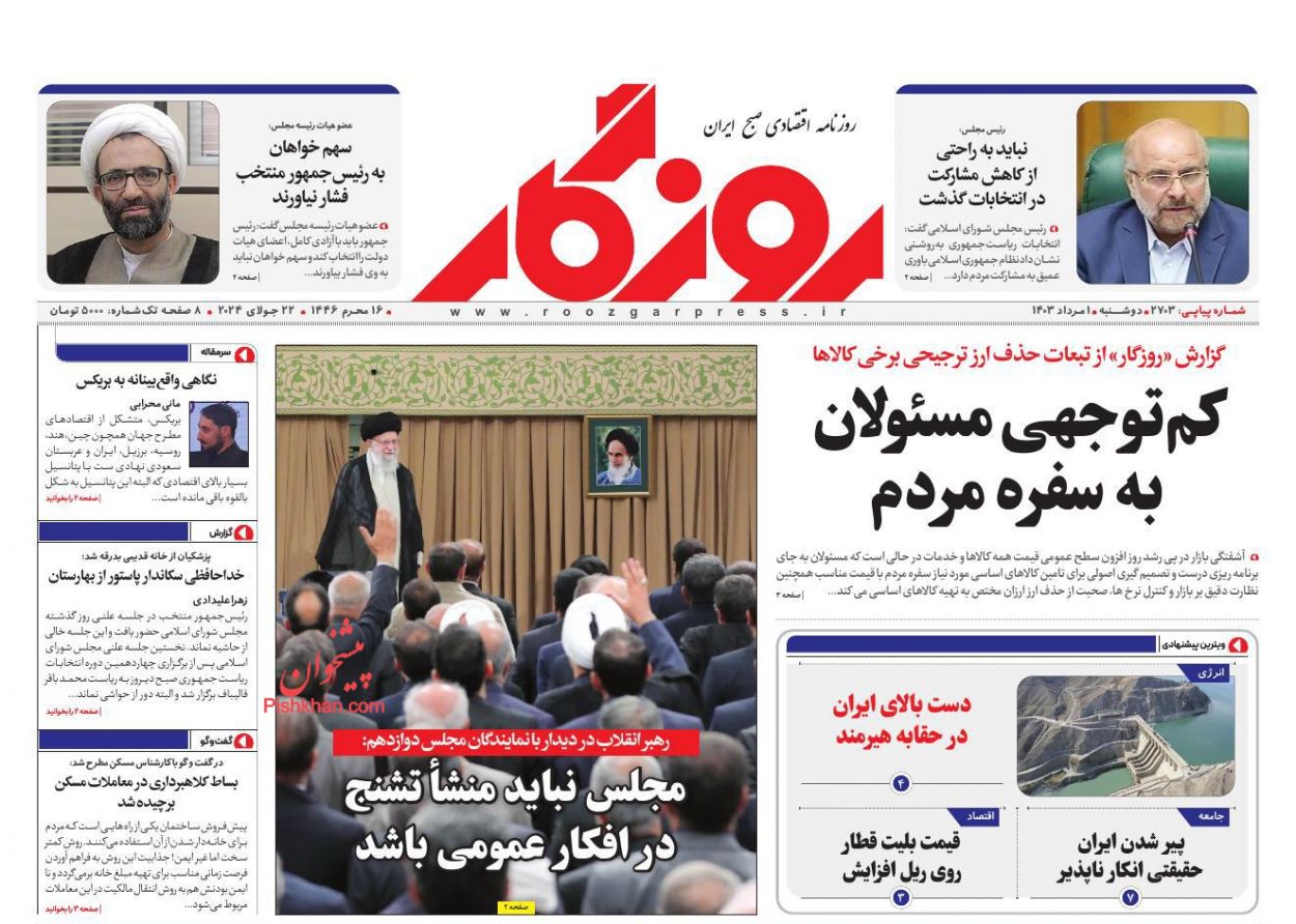 قیمت ۳۶۰- صفحه اول روزنامههای اقتصادی کشور امروز دوشنبه ۱ مرداد به مسائل روز این حوزه اختصاص پیدا کرد.