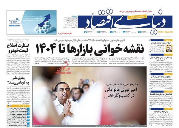 به گزارش قیمت ۳۶۰؛ روزنامه دنیای اقتصاد در گزارشی از احتمال اصلاح قیمت خودرو خبر میدهد؛ روزنامه جهان صنعت در گزارش صفحهی اول خود به وضعیت عدم اجرای متناسبسازی حقوق بازنشستگان نگاهی دارد؛ روزنامه جهان اقتصاد نیز در گزارشی به سراغ دلایل رونق اجاره انبارها رفته است و ناتوانی برای تهیه مسکن را عامل مهمی در این زمینه میداند و روزنامه ثروت نیز نگاهی به چالشهای پیشروی دولت چهاردهم در بودجه نویسی سال 1404 دارد.