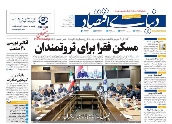قیمت ۳۶۰- صفحه اول روزنامههای اقتصادی کشور امروز یکشنبه ۹ دی به مسائل روز این حوزه اختصاص پیدا کرد.