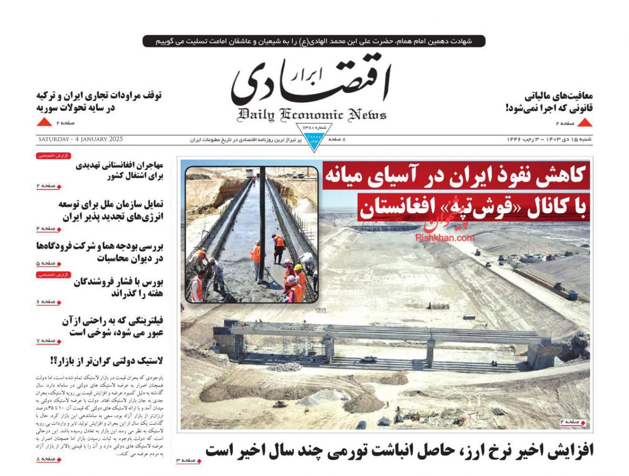 قیمت ۳۶۰- صفحه اول روزنامههای اقتصادی کشور امروز شنبه 15 دی به مسائل روز این حوزه اختصاص پیدا کرد.