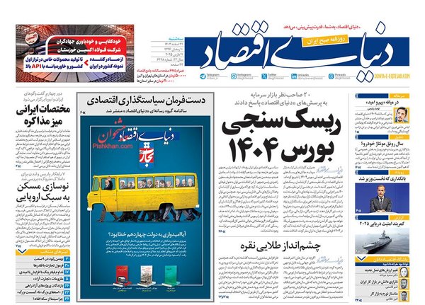 گزارش صفحه اول روزنامه ثروت به گرانشدن بلیطها در ایام نوروز 1404 اختصاص دارد و از رکود گردشگری و سفر با توجه به افزایش قیمتها مینویسد