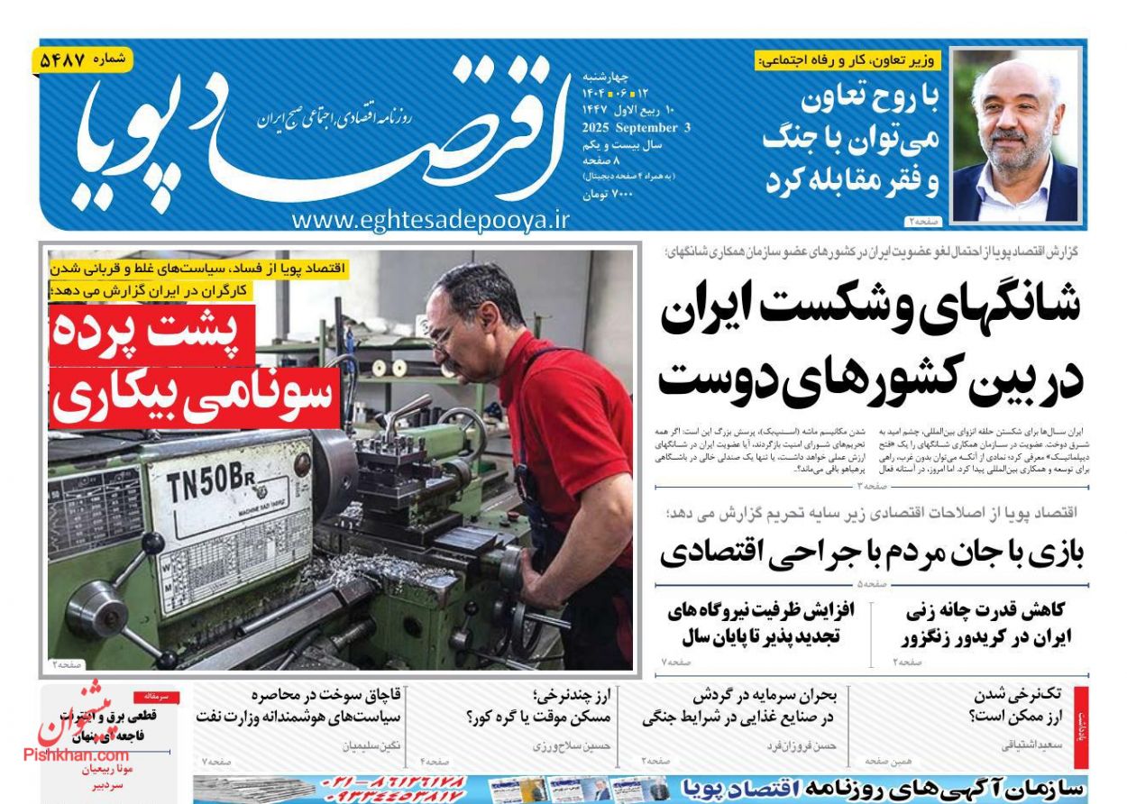 روزنامه   اقتصاد پویا در گزارشی نگاهی به بیکار شدن کارگران در ایران دارد و پشت‌پرده  سیاست‌های غلط و فساد را بررسی می‌کند.