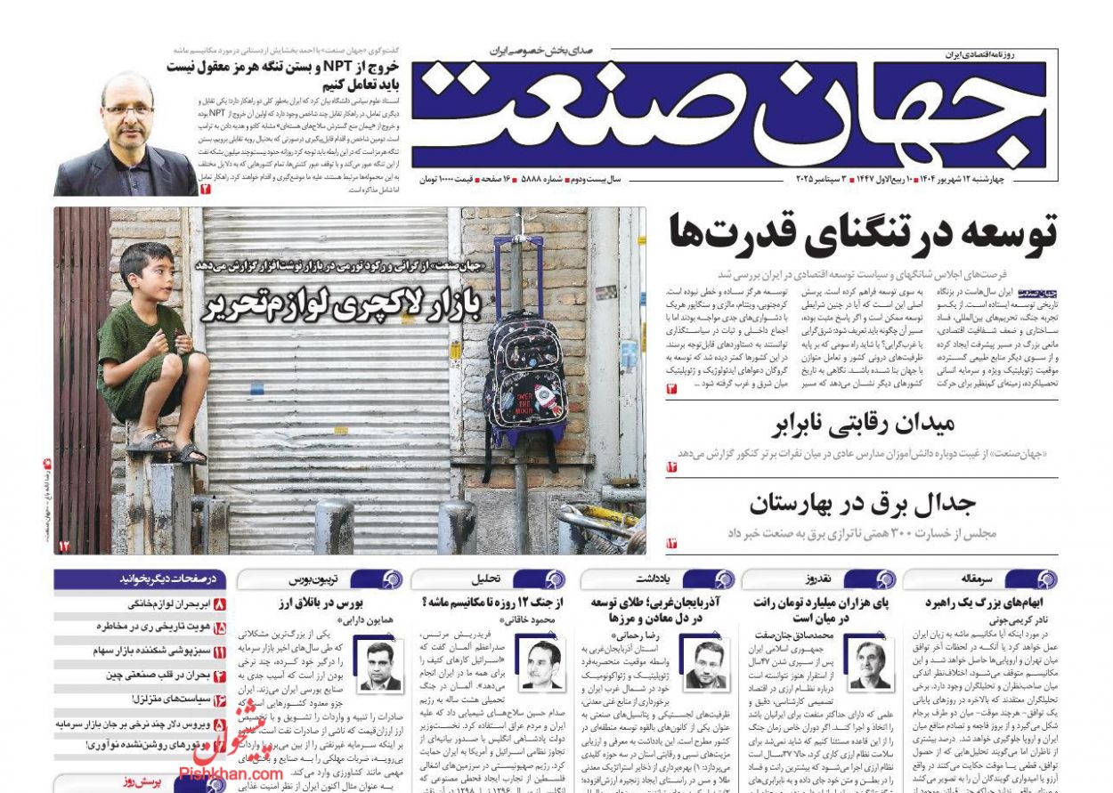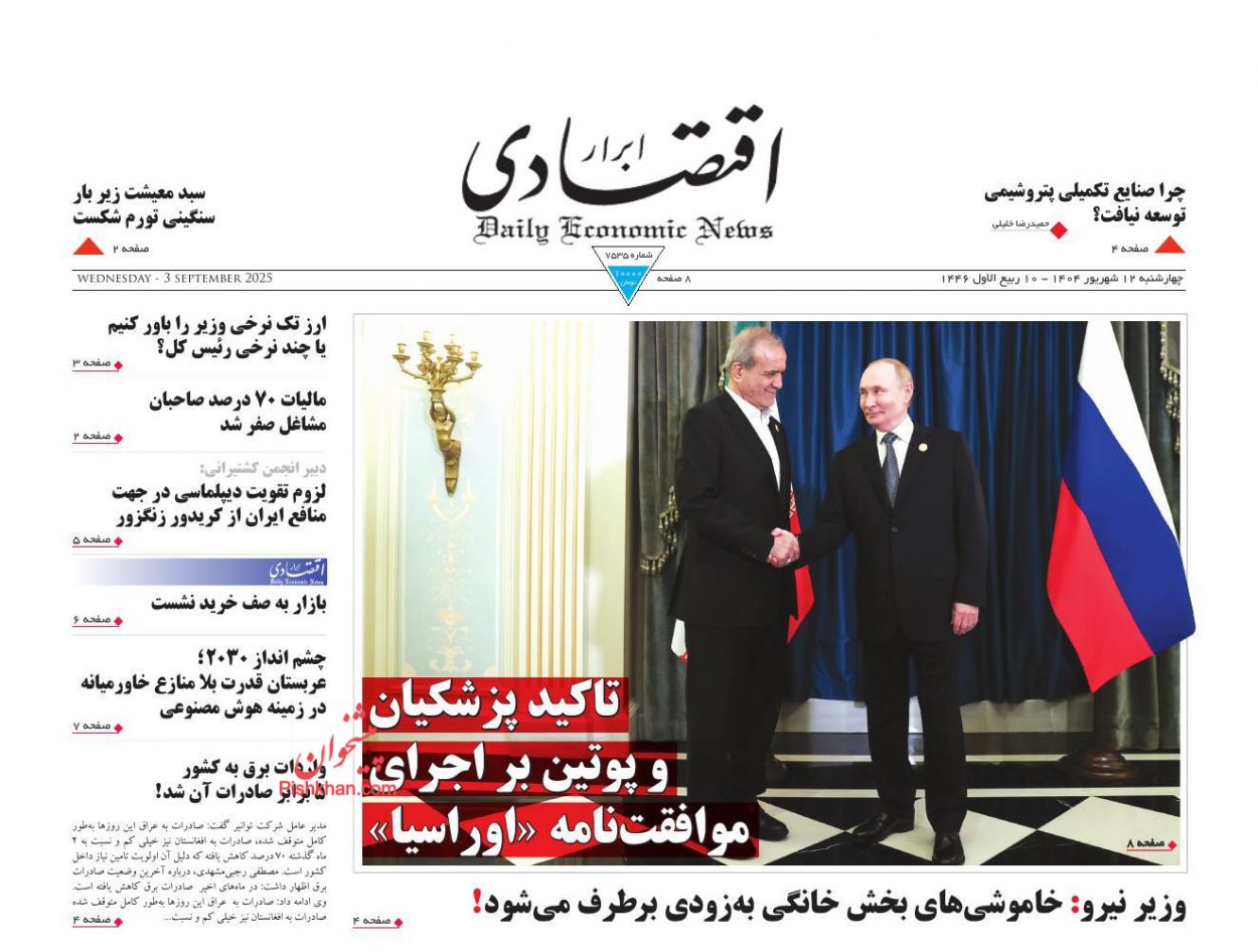 قیمت ۳۶۰- صفحه اول روزنامه‌های اقتصادی کشور امروز چهارشنبه ۱۲ شهریور به مسائل روز این حوزه اختصاص پیدا کرد.
