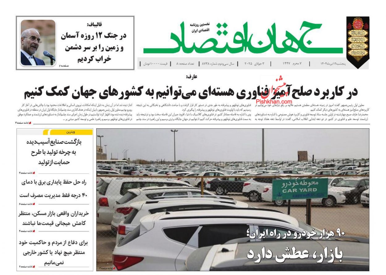 قیمت ۳۶۰- صفحه اول روزنامههای اقتصادی کشور امروز پنجشنبه 12 تیر به مسائل روز این حوزه اختصاص پیدا کرد.