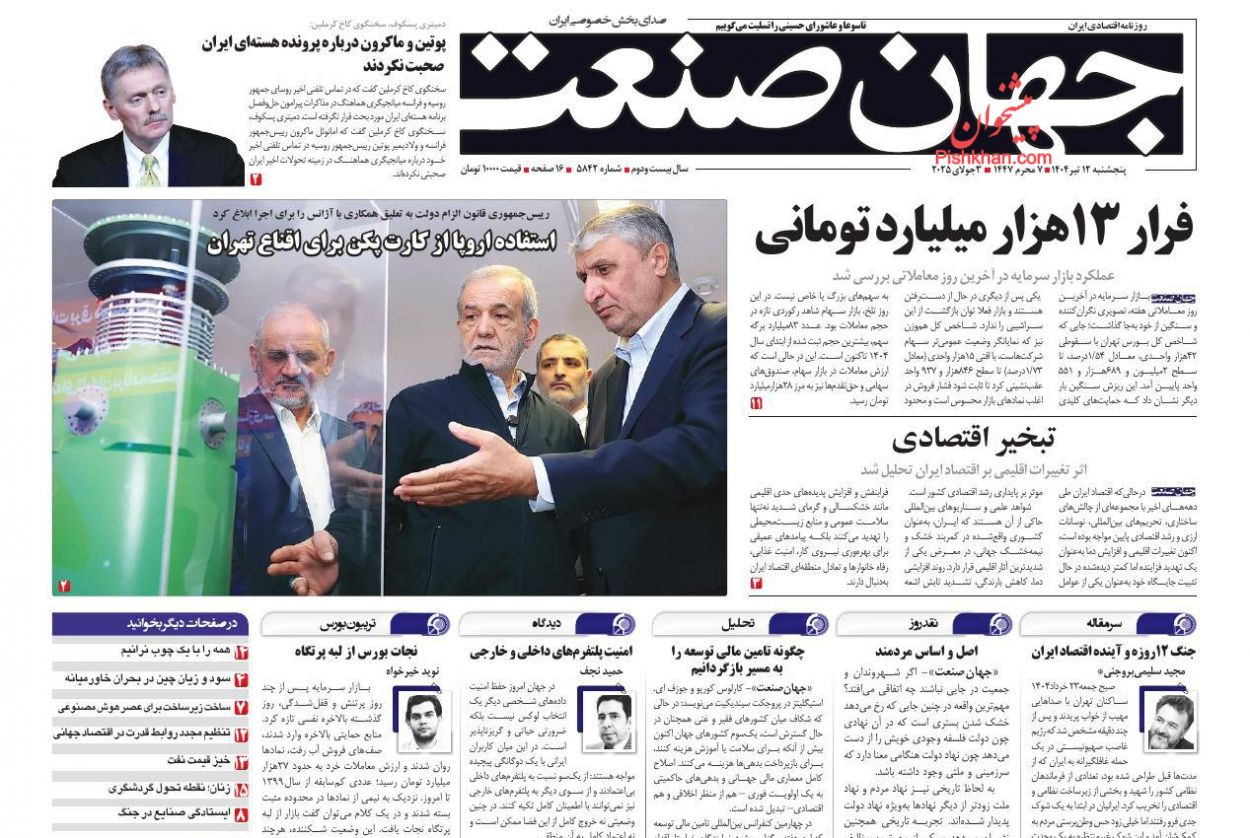روزنامه جهان صنعت در گزارش خود عملکرد بازار سرمایه در هفته اخیر را بررسی کرده و از فرار ۱۳ هزار میلیارد تومانی مینویسد.