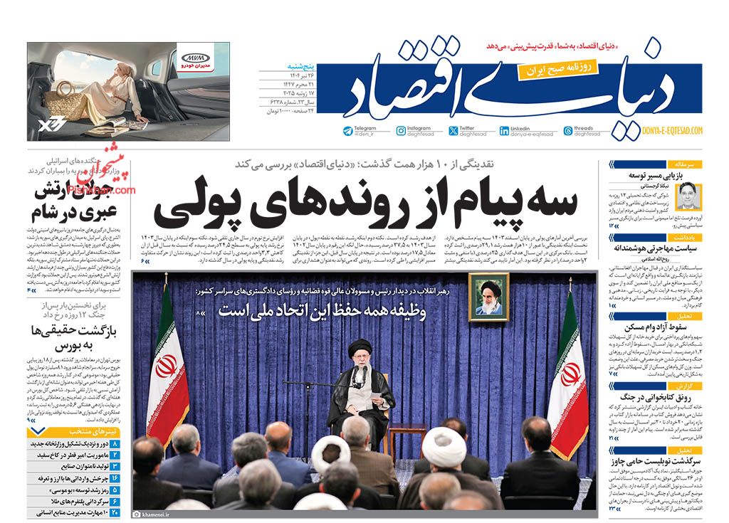 قیمت ۳۶۰- صفحه اول روزنامههای اقتصادی کشور امروز پنجشنبه ۲۶ تیر به مسائل روز این حوزه اختصاص پیدا کرد.
