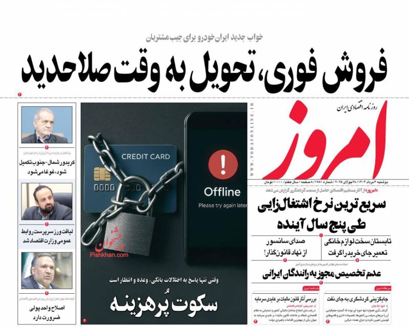 قیمت ۳۶۰- صفحه اول روزنامههای اقتصادی کشور امروز دوشنبه 6 مرداد به مسائل روز این حوزه اختصاص پیدا کرد.