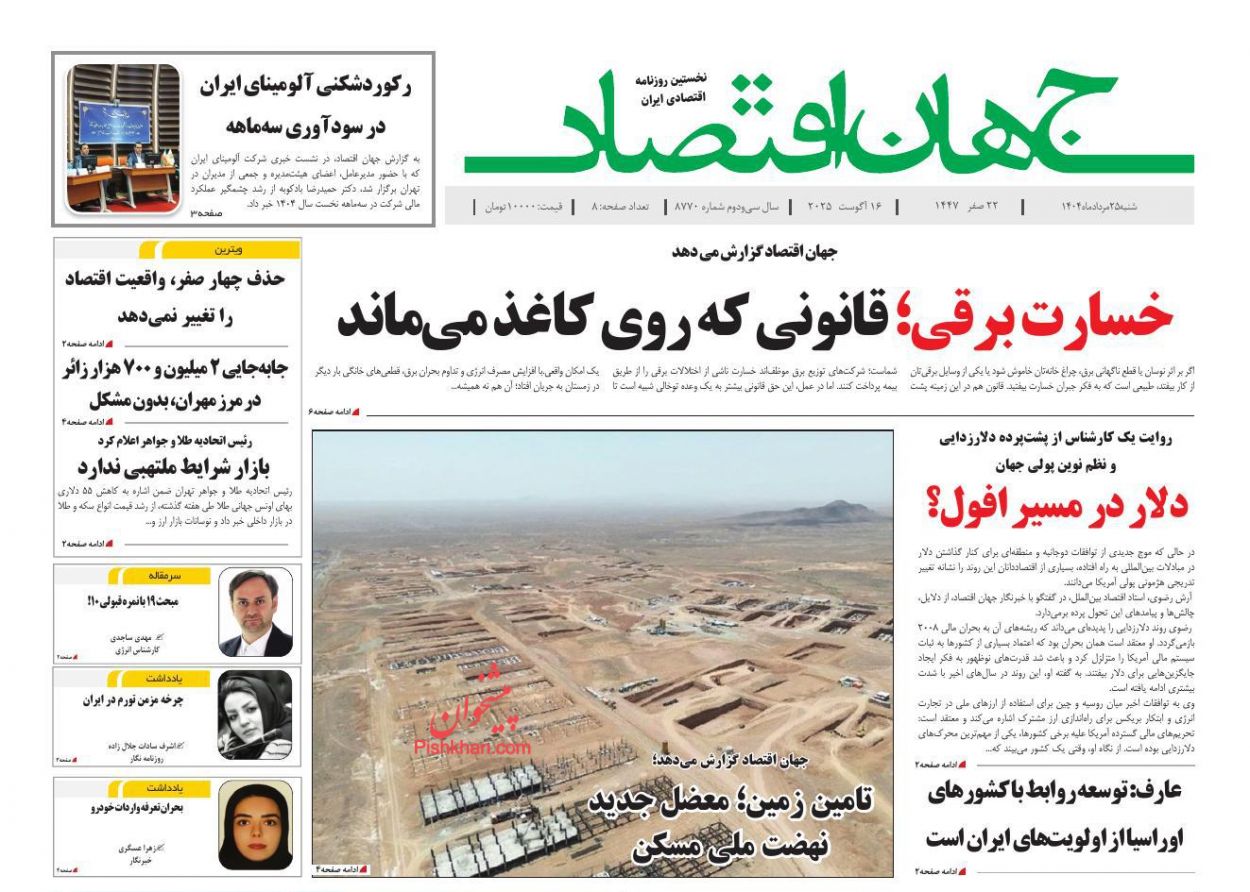 قیمت ۳۶۰- صفحه اول روزنامههای اقتصادی کشور امروز شنبه 25 مرداد مرداد به مسائل روز این حوزه اختصاص پیدا کرد.