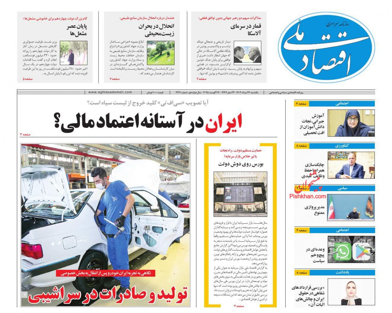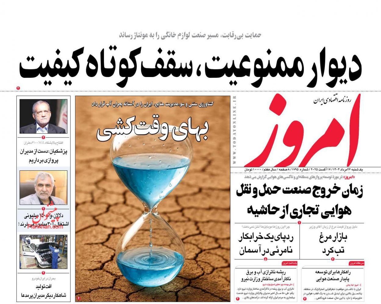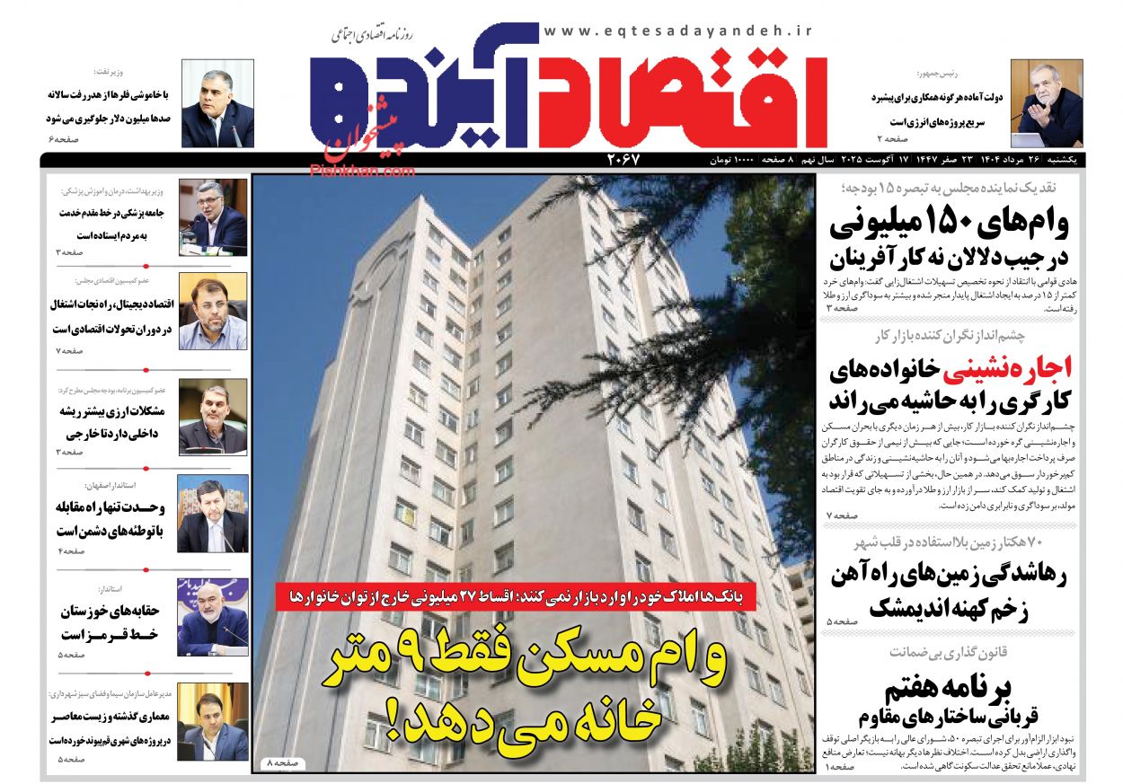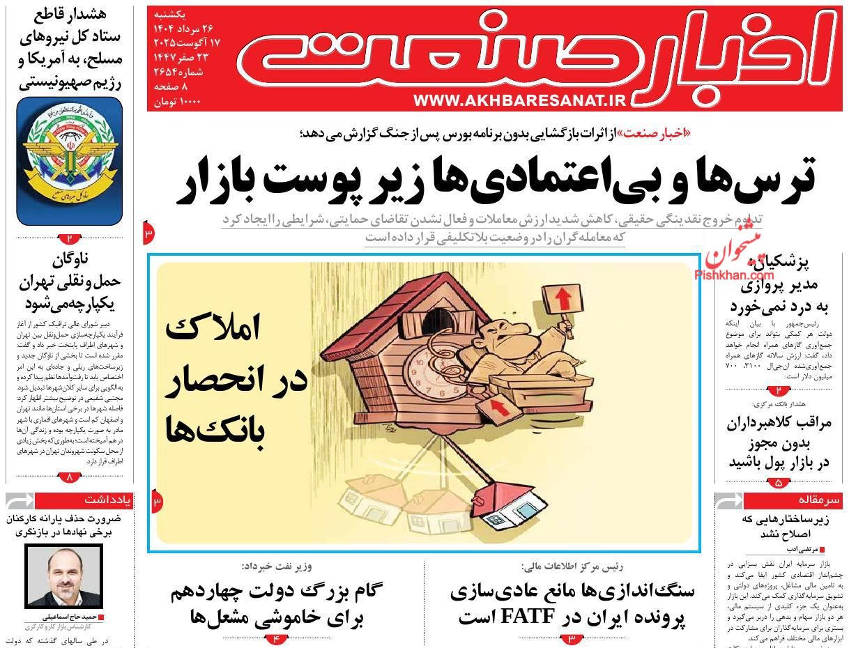 قیمت ۳۶۰- صفحه اول روزنامههای اقتصادی کشور امروز یکشنبه 26 مرداد مرداد به مسائل روز این حوزه اختصاص پیدا کرد.