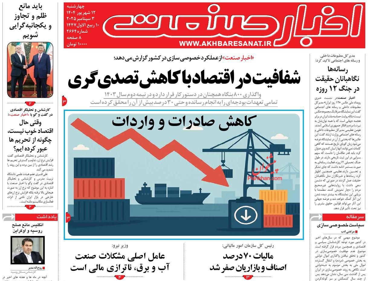 قیمت ۳۶۰- صفحه اول روزنامههای اقتصادی کشور امروز چهارشنبه ۱۲ شهریور به مسائل روز این حوزه اختصاص پیدا کرد.