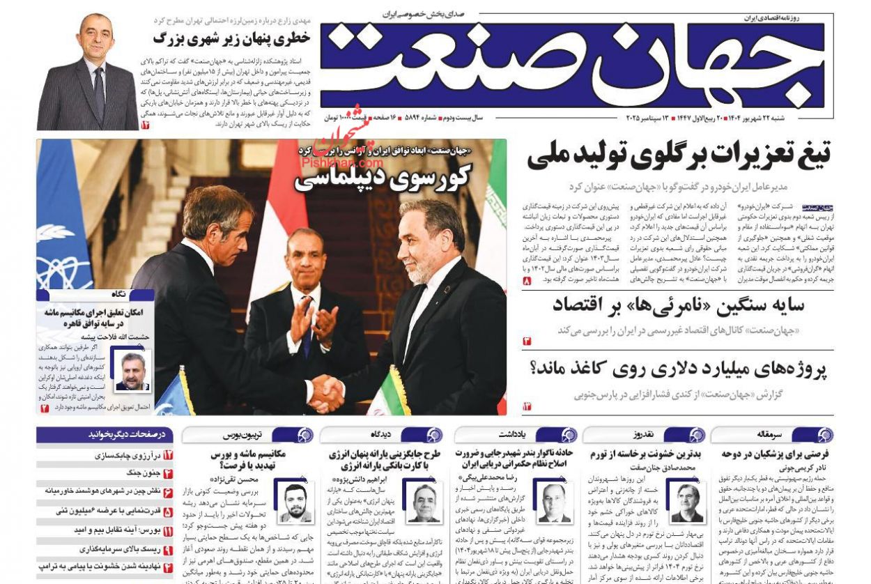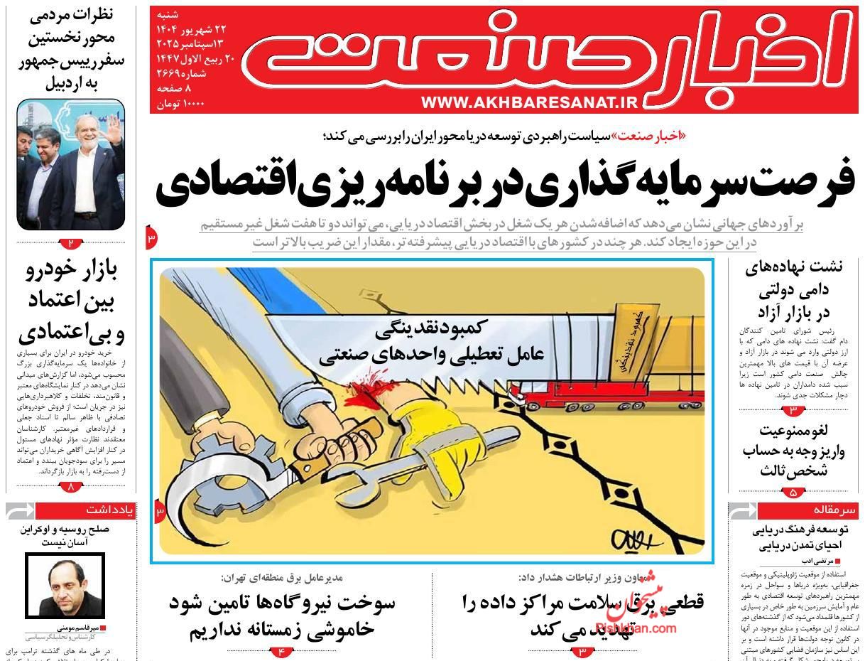 قیمت ۳۶۰- صفحه اول روزنامههای اقتصادی کشور امروز شنبه ۲۲ شهریور به مسائل روز این حوزه اختصاص پیدا کرد.