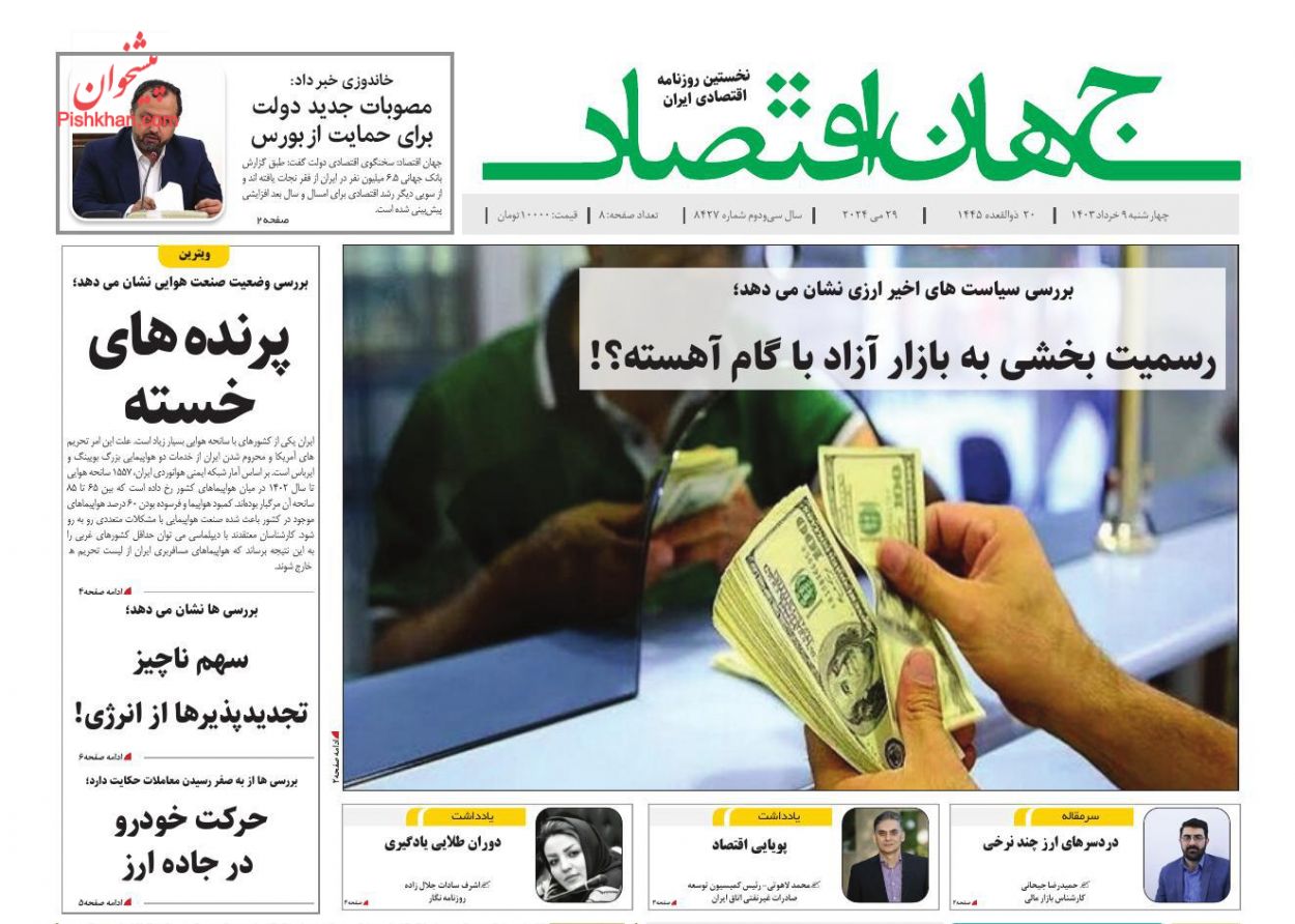 قیمت ۳۶۰- صفحه اول روزنامههای اقتصادی کشور امروز چهارشنبه ۹ خرداد به مسائل روز این حوزه اختصاص پیدا کرد.